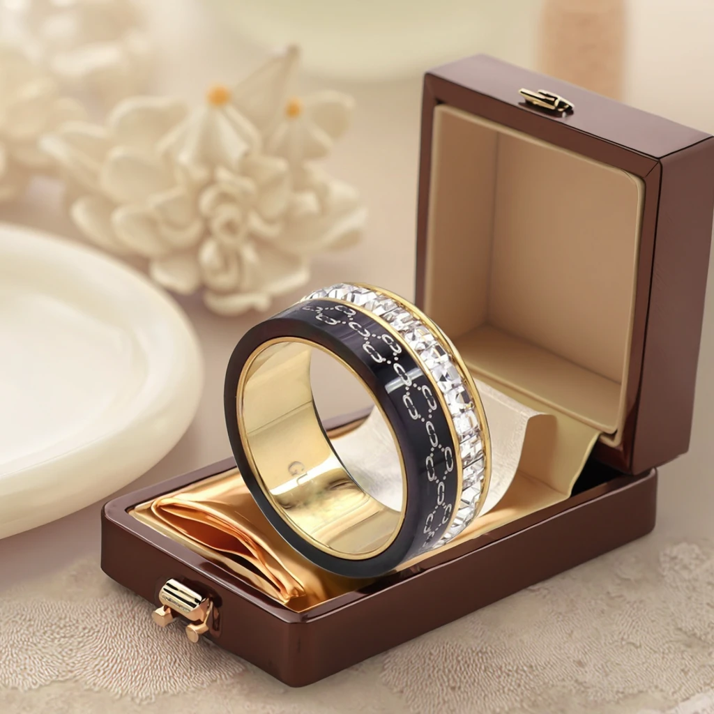 Designer Brand Zircon Ring, 18K Gold, Classic Style, Engagement Gift Ring, Stainless Steel, Natural Gemstone.